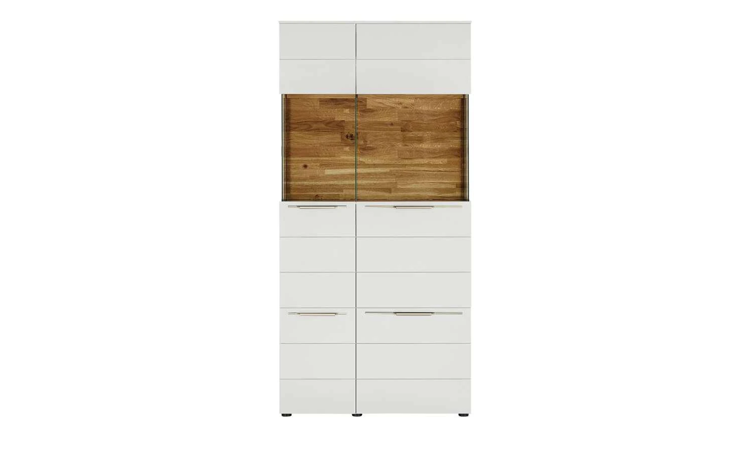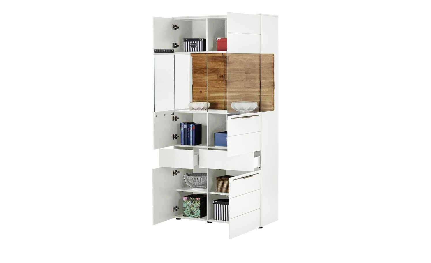 - Mehr zur Ausführung: 2 verstellbare Holzböden, Korpus mit Seitenverglasung, 2 Holztüren und 2 Türen mit Glaseinsatz