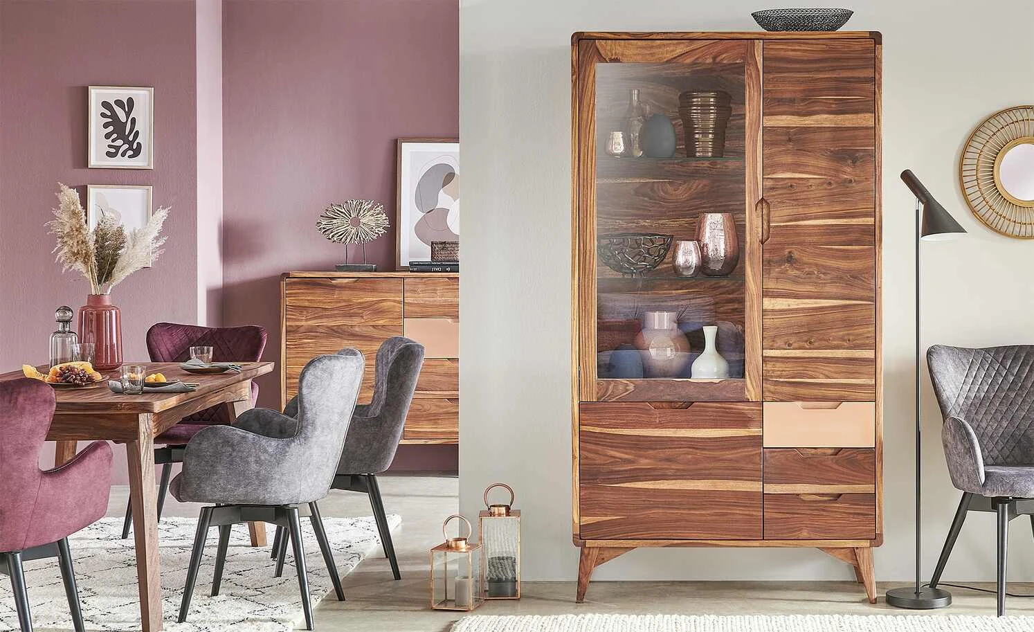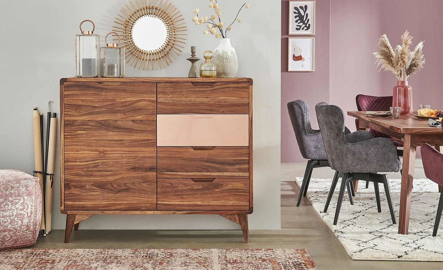 - Farbe / Dekor: Sheesham furniert / Kupfer