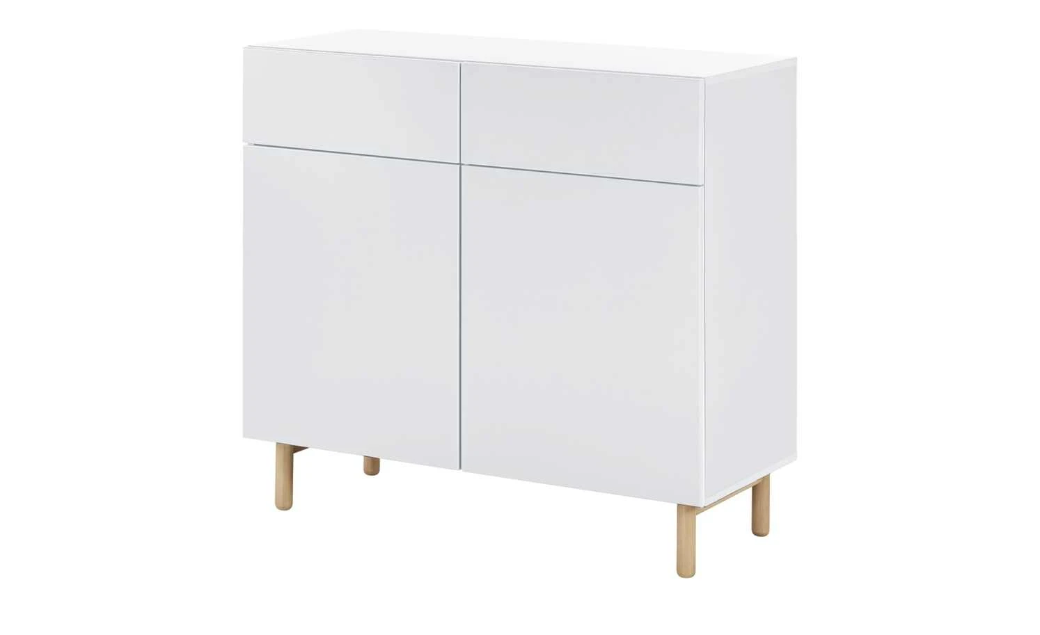 Fans reduzierter Designs werden die Kommode Konstanz lieben. Das klare Formkonzept spricht für sich. Selbst auf Griffe ist verzichtet worden. Stattdessen öffnen die Schubladen und Türen durch einen leichten Druck auf ihre Vorderseite – auch Push-to-Open genannt. Passend zur minimalistischen Linienführung ist auch die Farbe gewählt: schönes Weiß mit einem matten Finish. Konstanz verfügt über zwei Schubladen und vier Fächer hinter den beiden Türen. Die beiden Einlegeböden können Sie in der Höhe verstellen, um die Größe der Fächer zu variieren.