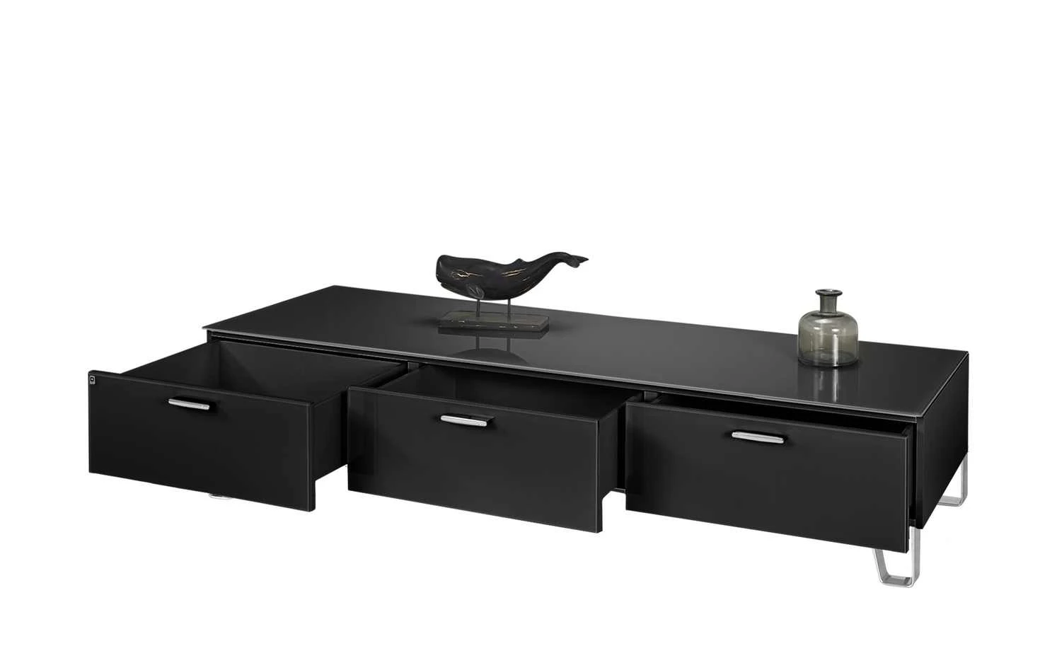 Stilvoll-edles Design, praktischer Nutzen und erstklassige Qualität vereinen sich beim TV-Unterteil Cube von LEONARDO. Front und Korpus haben eine Oberfläche aus lackiertem ESG-Sicherheitsglas. Es ist besonders stabil und zudem pflegeleicht. Dank der glänzenden Glasoberfläche kommt die schwarze Farbe von Cube besonders schön zur Geltung. Das TV-Unterteil ist mit bis zu 30 Kilogramm belastbar und kann für TV-Geräte bis zu 75 Zoll Größe verwendet werden. Stauraum befindet sich in drei Schubladen. Alle drei haben einen Vollauszug und sind mit einem Selbsteinzug für langsames und leises Schließen ausgestattet.