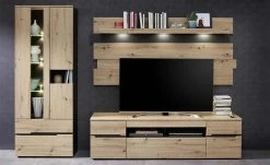Das Lowboard Cortina kann einzeln oder in Kombination mit den anderen Lowboards der Serie genutzt werden. Cortina verfügt über eine große Schublade, die sich über die gesamte Breite des Lowboards erstreckt. Front und Korpus sind in mattem Basalzgrau designt. Abdeckplatte und Boden setzen sich in Eiche Altholz (Nachbildung) ab.