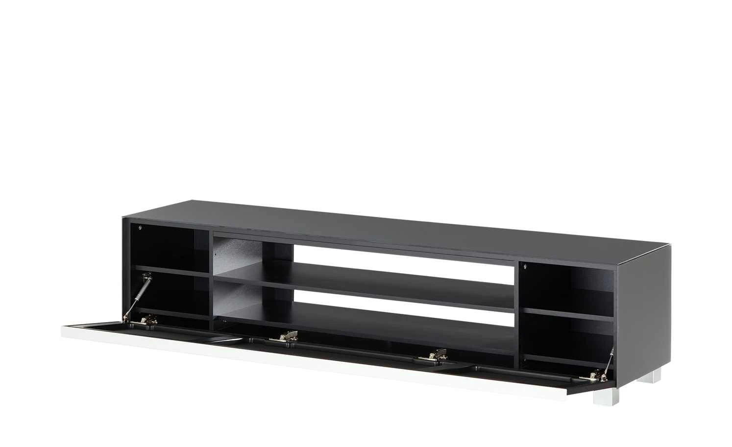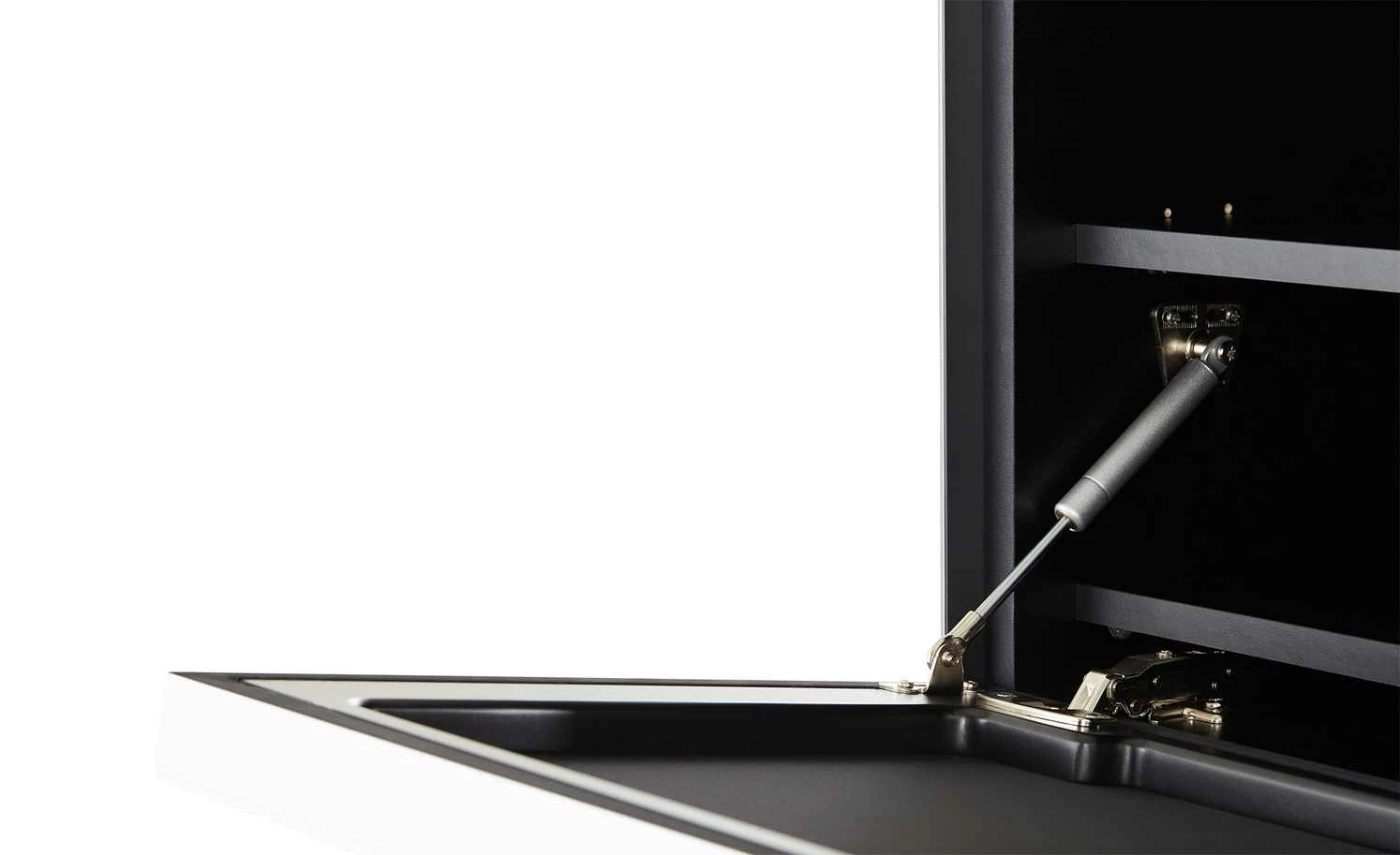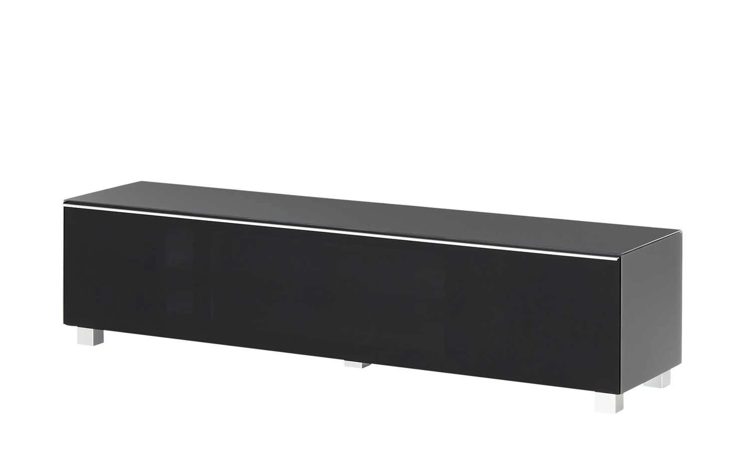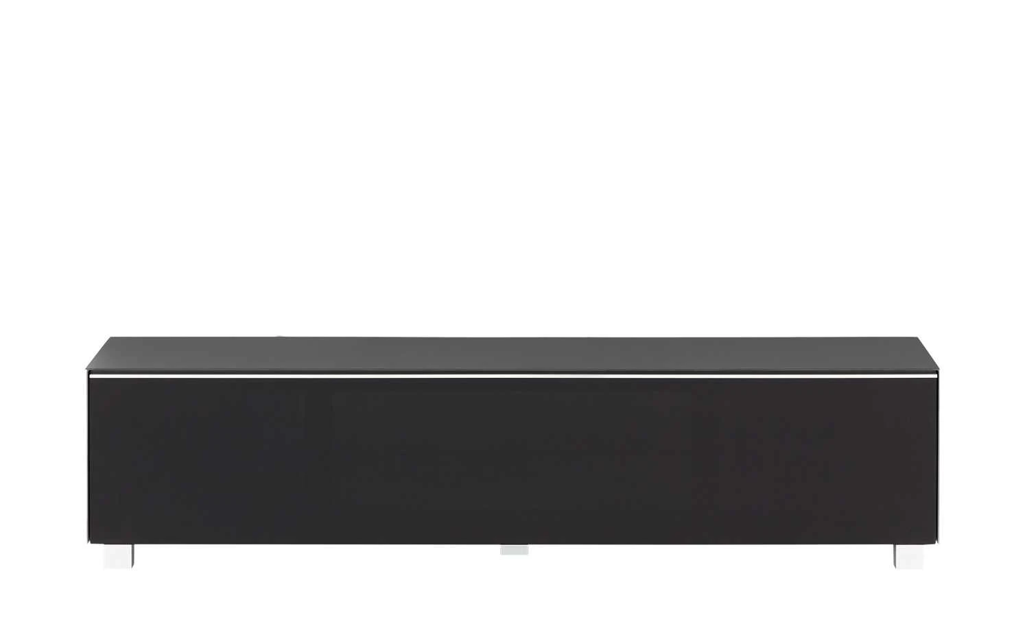 Das Lowboard Soundbase L ist der ideale Platz für Ihren Fernseher. Hinter der Klappe finden außerdem DVD-Player oder Festplattenrecorder ihren Platz. In erster Linie ist Soundbase L aber für ein Soundsystem gedacht, dass im Inneren des Lowboardes platziert werden kann. Dafür stehen hinter der Klappe zwei große Fächer zur Verfügung. Das Lowboard ist nicht nur ein Stauraum, sondern auch eine Sound-Lösung. Die Klappe ist auf der Vorderseite nämlich mit einem speziellen Akustik-Stoff versehen. Dieser bringt den Ton des Soundsystems besonders gut zur Geltung. So können Sie beim Fernsehen oder Musik hören ein ganz besonderes Klangerlebnis genießen. Neben den technischen Raffinessen sieht das Lowboard auch gut aus. Der Korpus hat eine Oberfläche aus robustem Glas mit einem edlen matten Finish.