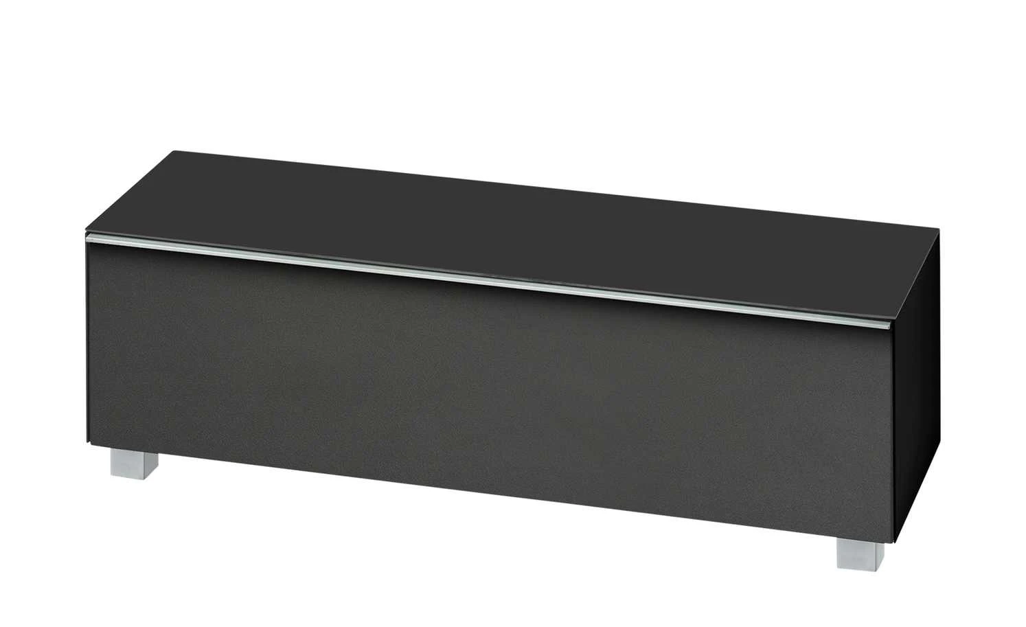 Stauraum und Stellplatz für Ihren TV und gleichzeitig eine geniale Soundlösung: das ist das Lowboard Soundbase S. Hinter der Klappe können Sie ein Soundsystem platzieren und gleichzeitig Blu-ray-Player oder Musikanlage unterbringen. Dafür stehen Ihnen zwei große und vier kleinere Fächer zur Verfügung. Der Korpus ist mit einer Glasoberfläche ausgestattet. Die Front ist mit einem speziellen Akustikstoff bespannt. Dieser sorgt dafür, dass Sie bei der Nutzung des Soundsystems einen optimalen Klang genießen können. Gleichzeitig ist der Stoff so dünn, dass Sie die Displays der Geräte erkennen können. Soundbase S ist gradlinig und puristisch designt. Somit vereinen sich Funktion und Design zu einem schönen Lowboard.