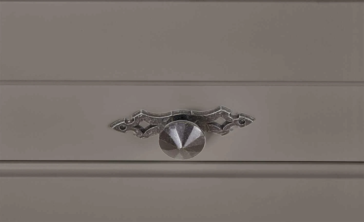 - Mehr zum Material: Absetzung aus Asteiche furniert, Korpus und Front aus Holzwerkstoff Graphit (Grau) lackiert