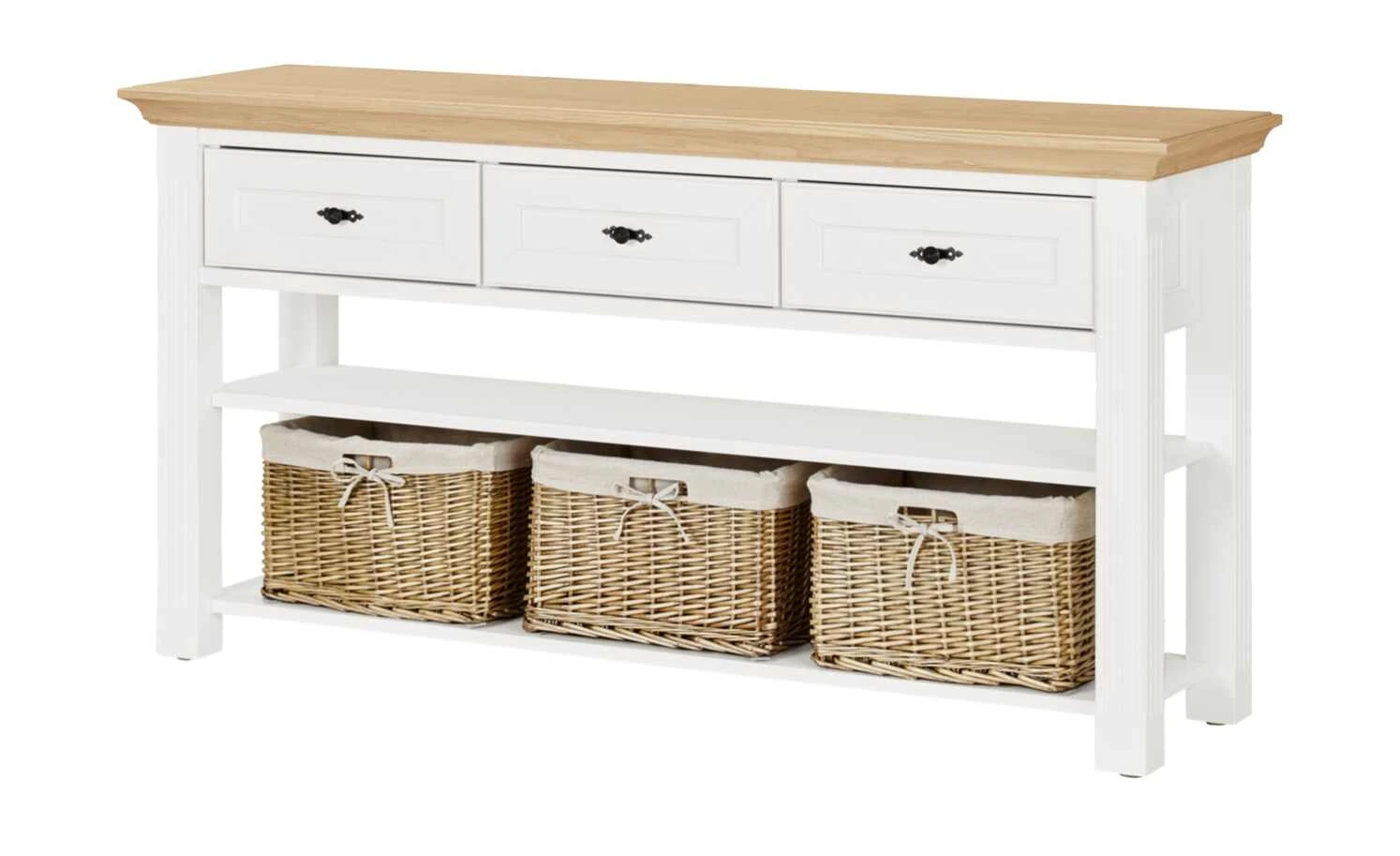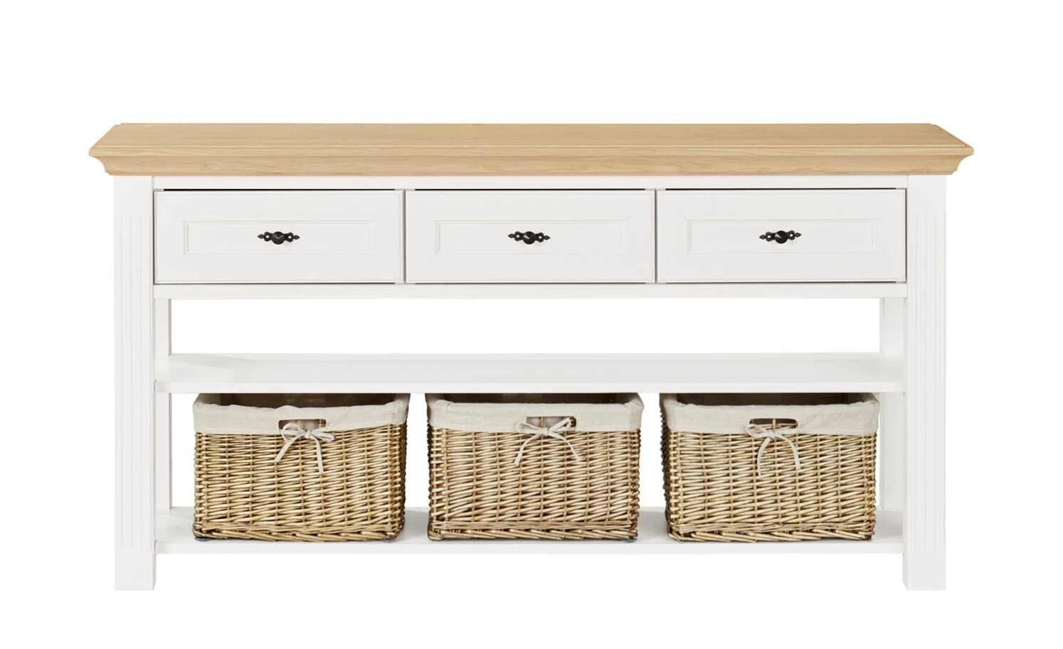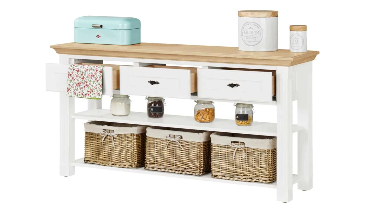 - Mehr zum Material: Absetzung aus Asteiche furniert , Korpus und Front aus Holzwerkstoff Weiß lackiert