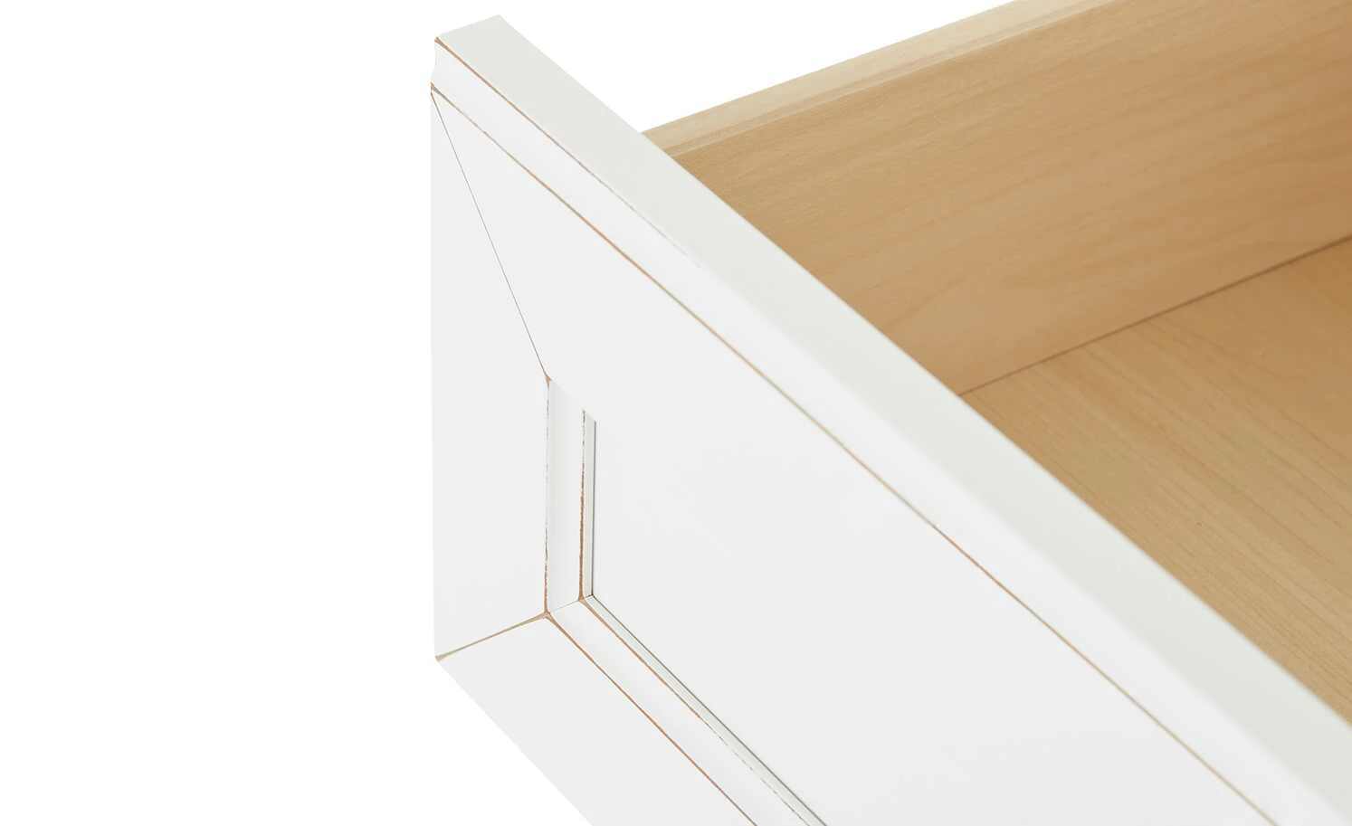- Mehr zum Material: Korpus und Front aus Holzwerkstoff Weiß lackiert im Vintage Look