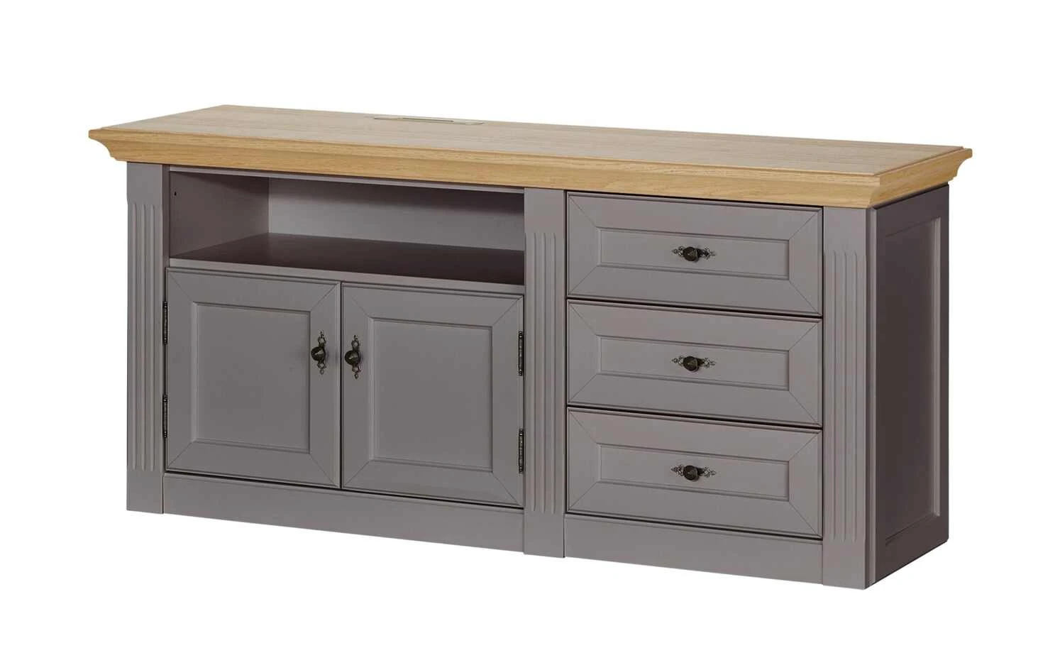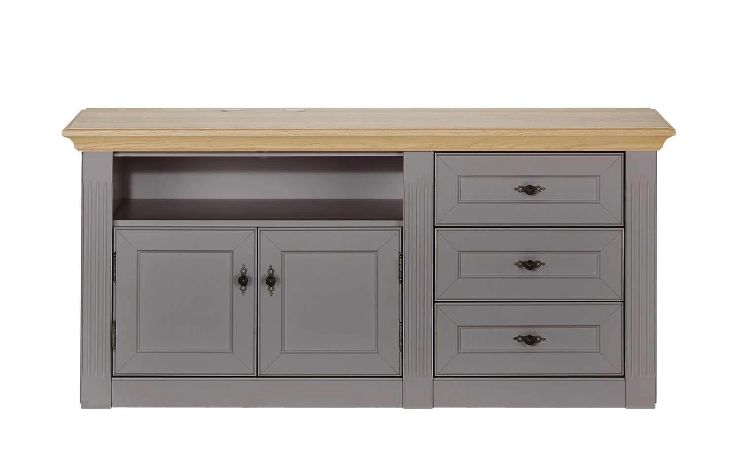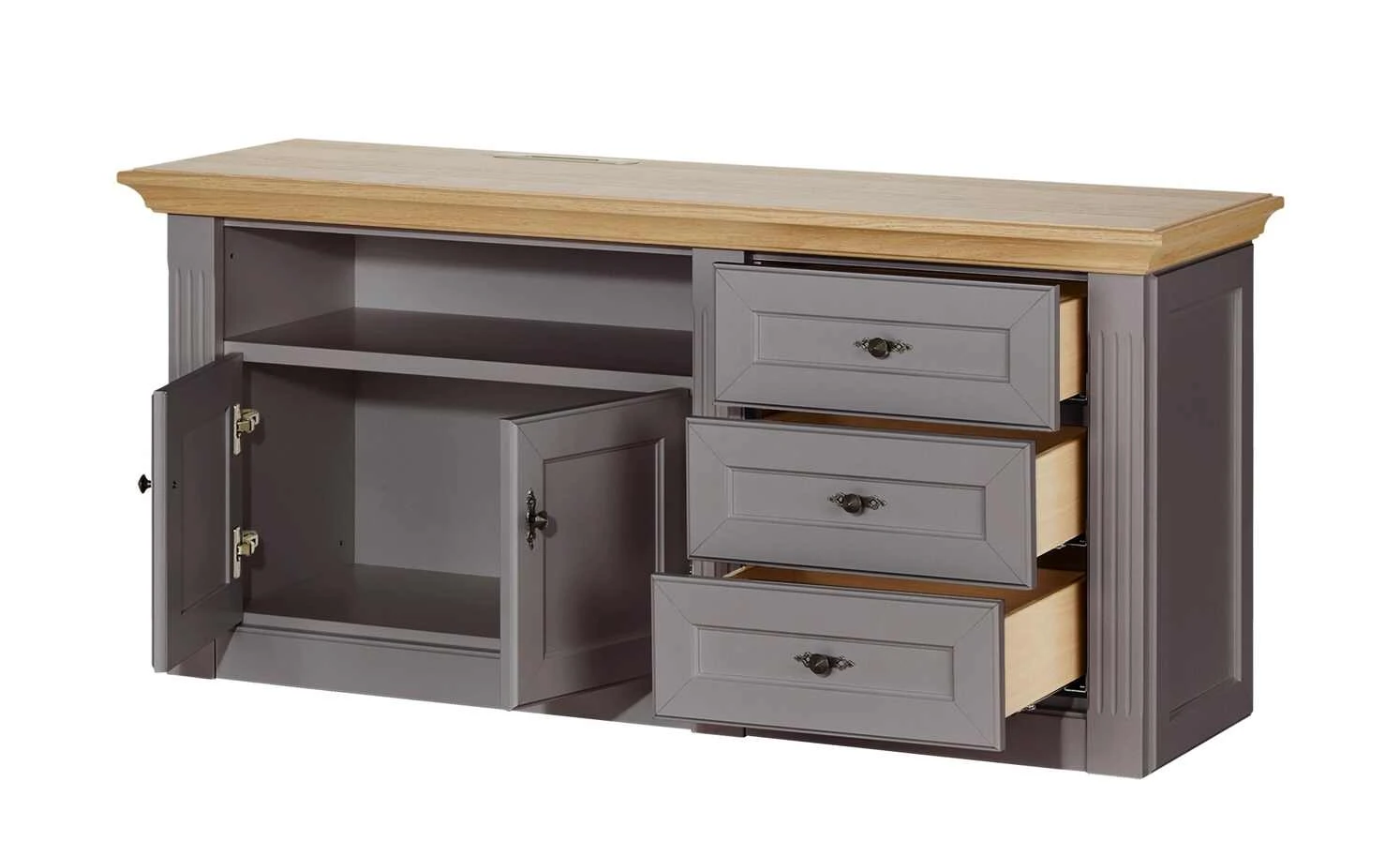 Das TV-Element Petit Chalet ist eine bezaubernde Kommode für Ihr Wohnzimmer. Sie können darauf Ihren Fernseher platzieren. In das offene Fach passen DVD-Player oder Festplattenrecorder. Dank des Kabeldurchlasses in der Rückwand verhindern Sie nervigen Kabelsalat. Darüber hinaus bietet Petit Chalet Aufbewahrungsmöglichkeiten hinter zwei Türen und in drei Schubkästen. Die freundliche Farbgestaltung passt zum detailverliebten Landhausdesign.