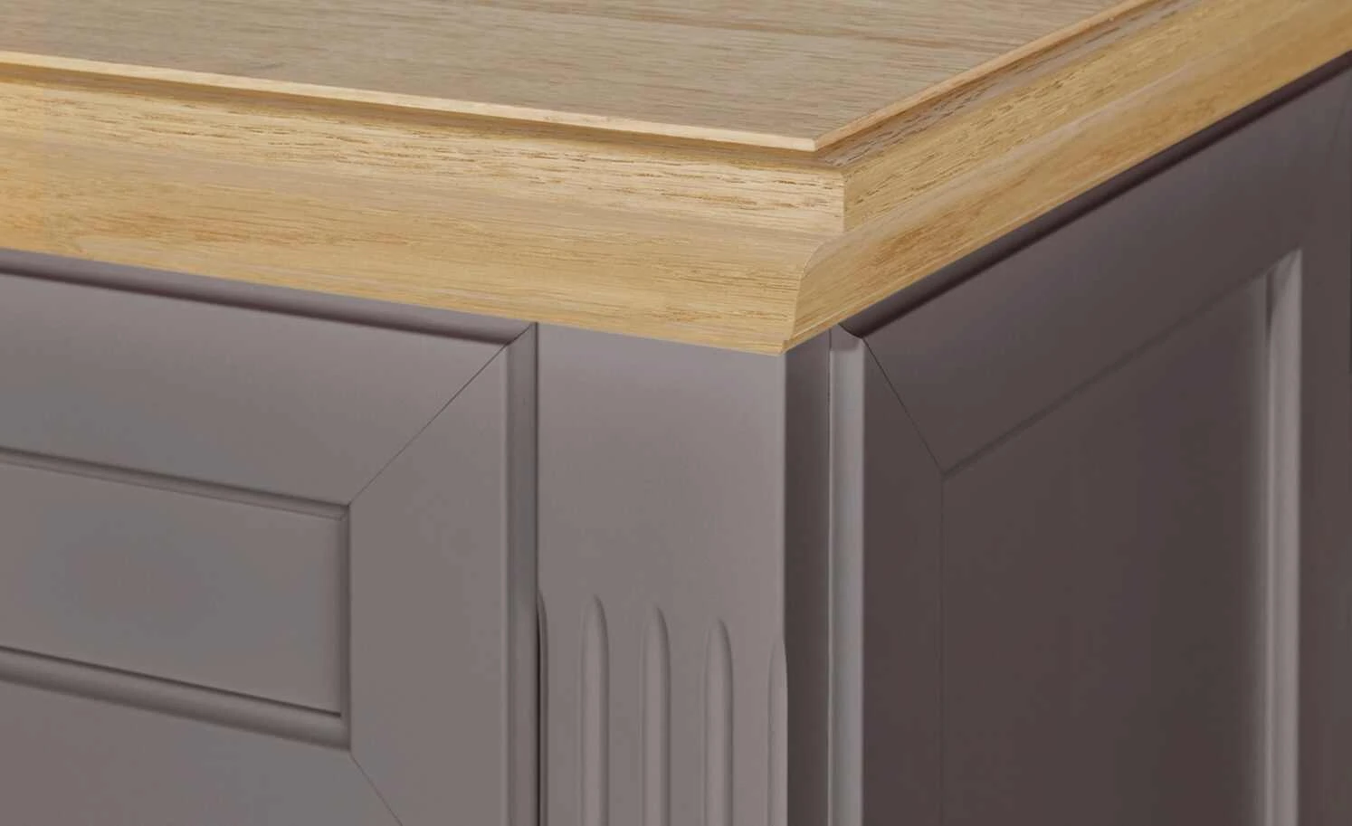 - Mehr zum Material: Korpus und Front aus Holzwerkstoff Graphit lackiert, Absetzung aus Asteiche furniert
