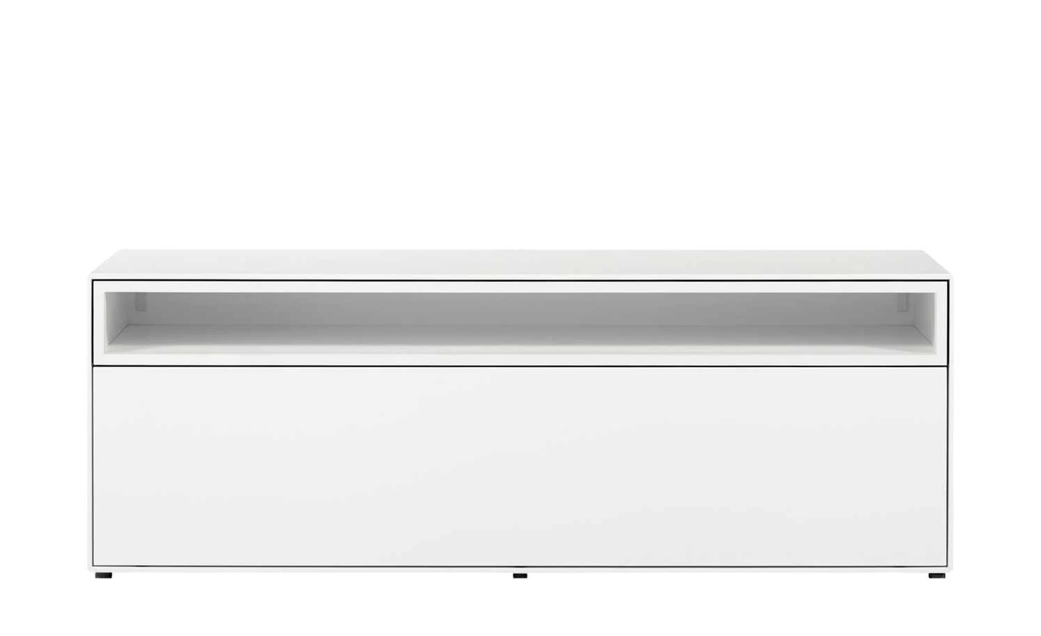 Kombinieren Sie das Lowboard now! easy by hülsta mit den anderen Modul-Elementen der gleichnamigen Serie oder lassen Sie es für sich wirken. Das Lowboard hat ein großes Fach, welches mit einer Klappe geschlossen werden kann. Die Klappe öffnet sich mithilfe der Push-to-Open-Funktion. Dabei müssen Sie nur auf die obere Vorderseite der Klappe drücken und schon geht sie auf. Oben hat now! easy außerdem ein längliches, offenes Fach.
