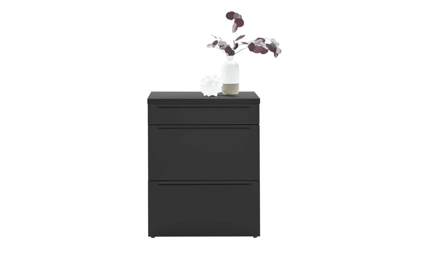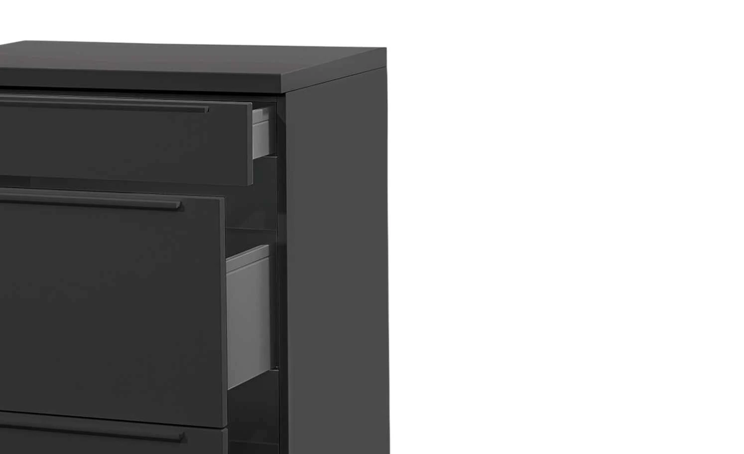 - Mehr zu Ausstattung / Funktion: Schubladen auf Unterflurkugelführung mit gedämpftem Selbsteinzug als Teilauszug, 1,7 cm hohe schwarze Kunststoff-Stellfüße, die durch Drehen Unebenheiten ausgleichen und einen schwebenden Charakter erzeugen, supermatte, samtige Oberflächen mit Anti-Fingerprint-Ausrüstung