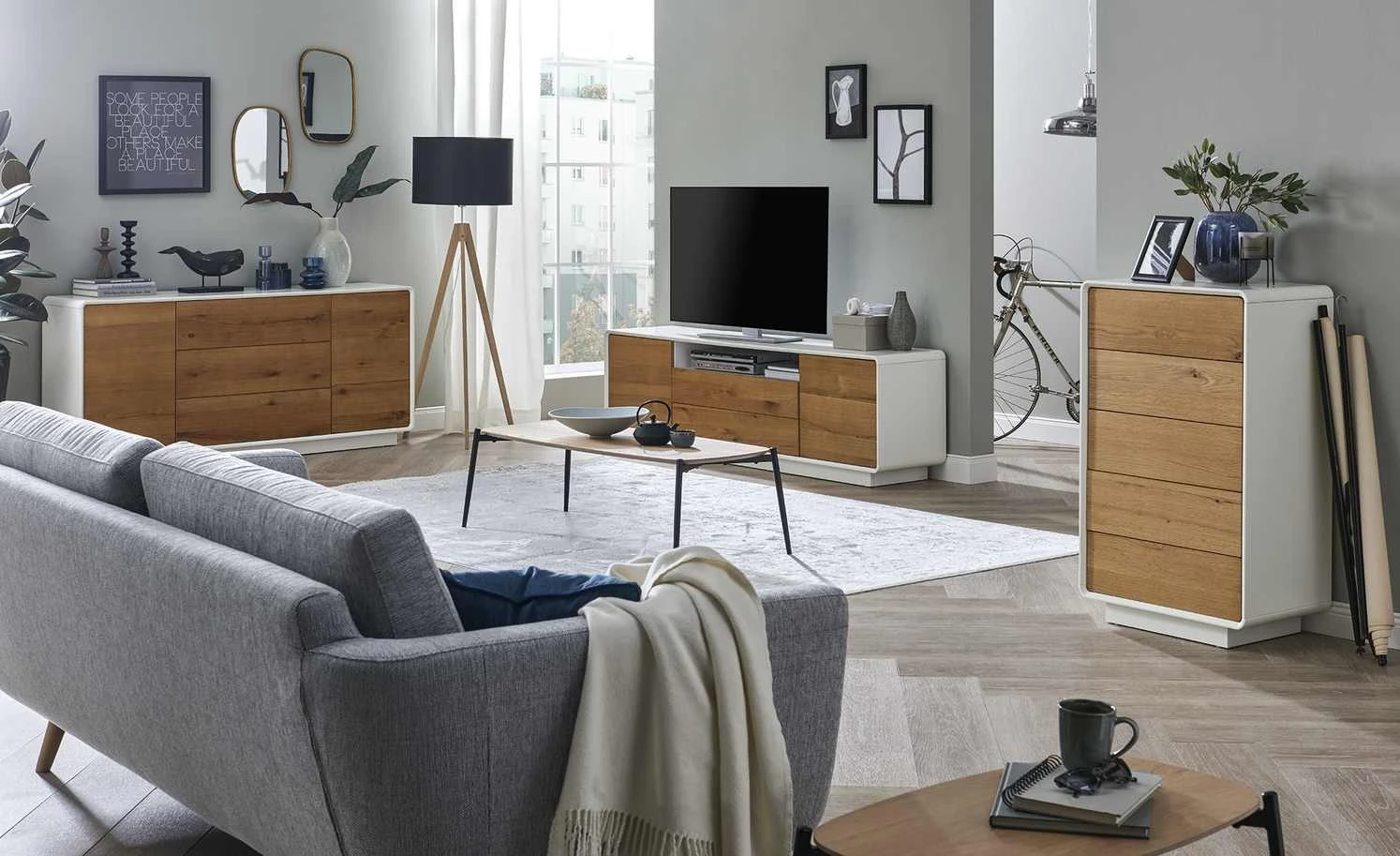 - Edles Asteichenfurnier & mattes Weiß