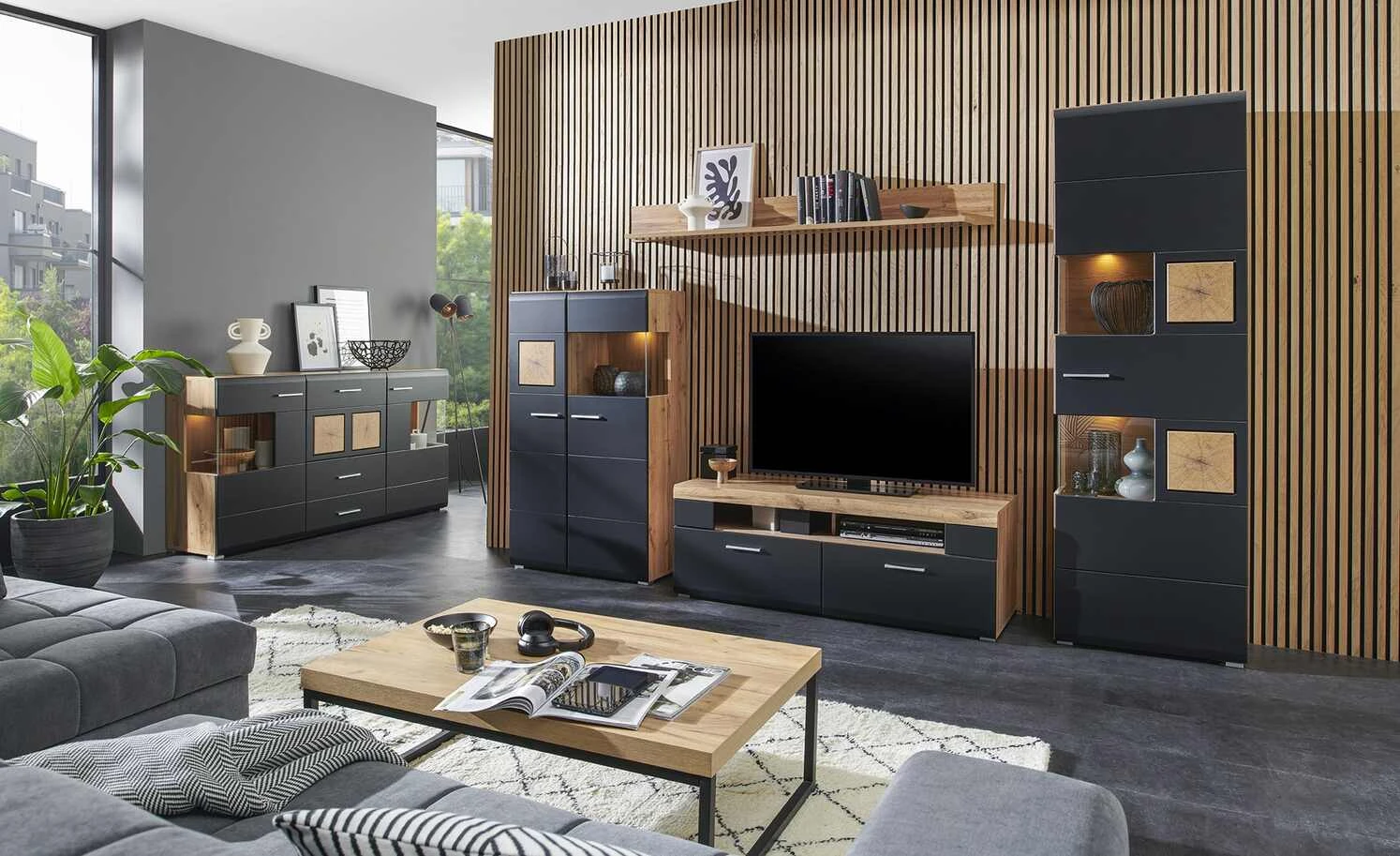Sideboard Cortina | Eiche Altholz (Nachbildung ) / Schwarz