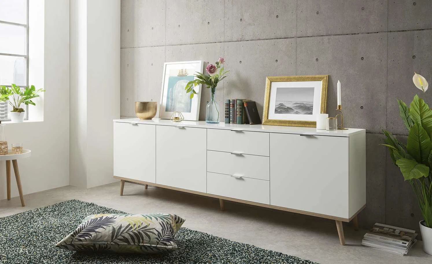 - Farbe / Dekor: Weiß/ Eiche sägerau (Nachbildung)