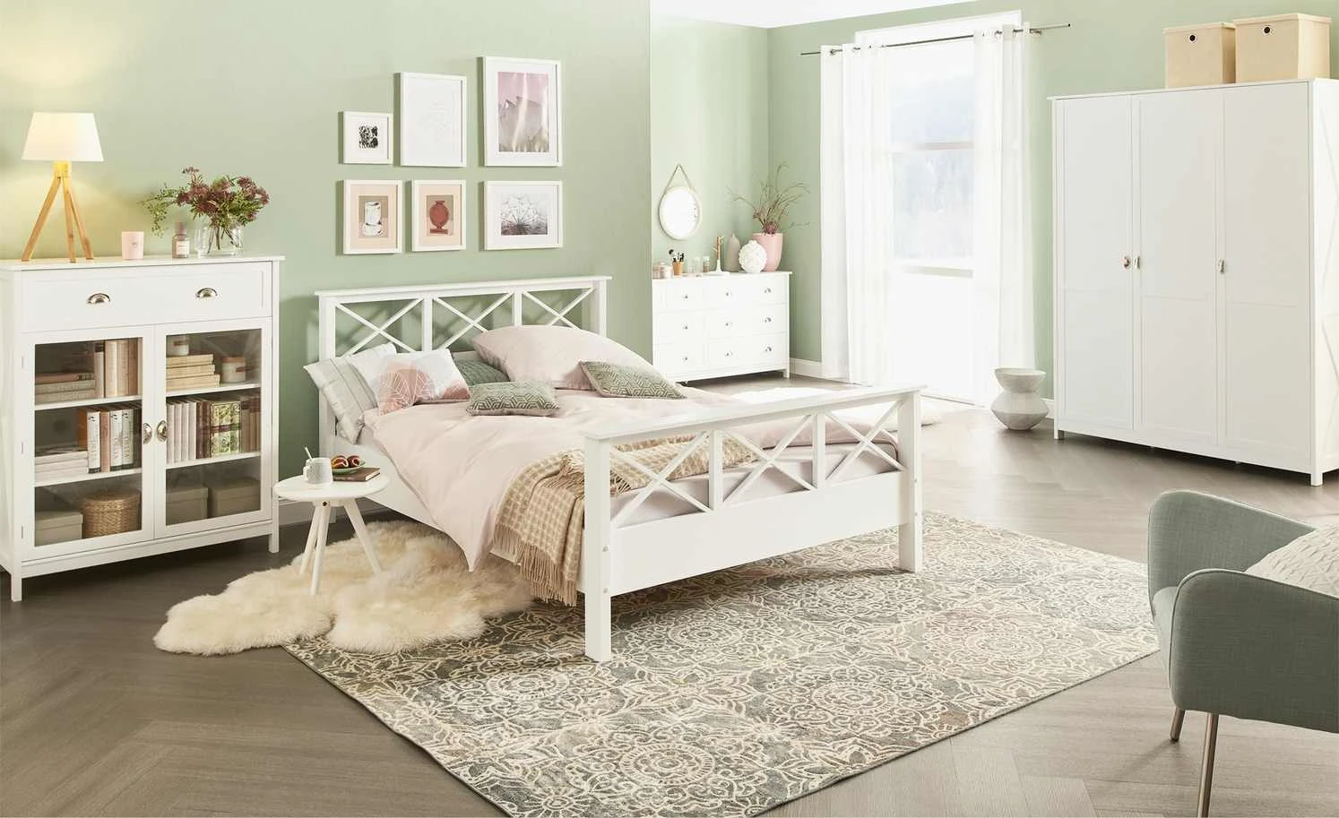 Das Sideboard Mosi zaubert Landhausflair in Wohnraum oder Schlafzimmer. Ein dekoratives Gestaltungsmerkmal sind die Streben in X-Form an den Seiten. Für Akzente sorgen die Apothekergriffe aus glänzendem Metall. Sie heben sich von der weißen Lackoberfläche ab. Mosi ist mit vier kleineren und vier größeren Schubfächern ausgestattet. Die kleinen Schubladen sind im oberen Teil der Kommode angeordnet; die großen darunter.