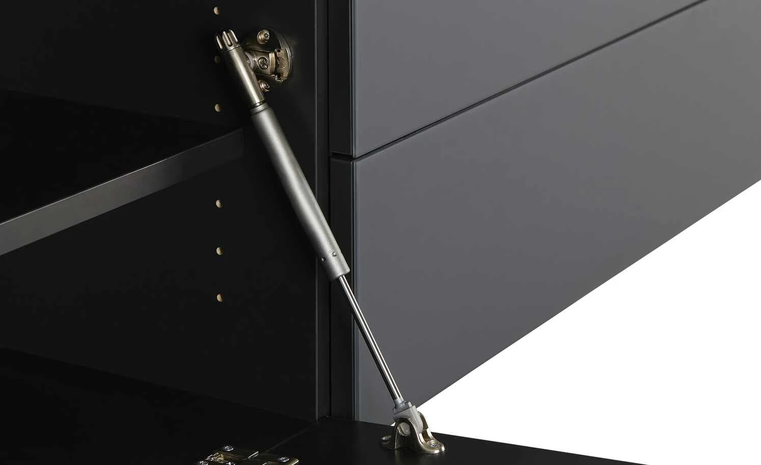 - Mehr zum Material: Korpus innen sowie Inneneinteilung: hochwertiger Schichtstoff auf Trägerplatte, Schwarz, Oberflächenfinish Korpus und Fronten: satiniert