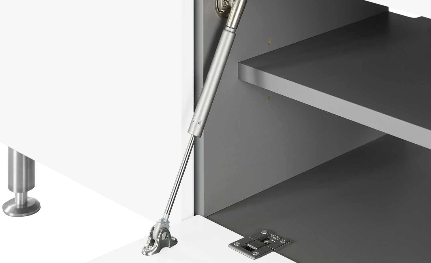 - Mehr zum Material: Korpus innen sowie Inneneinteilung: hochwertiger Schichtstoff auf Trägerplatte, grau, Oberflächenfinish Korpus und Front: seidenmatt