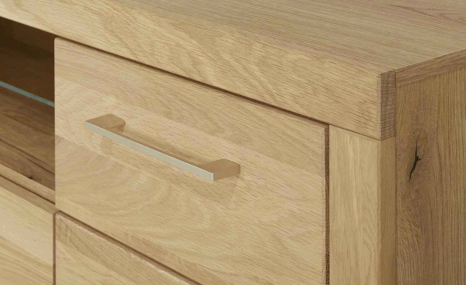 - Mehr zu Ausstattung / Funktion: Schubkasten mit Selbsteinzug, separates Scandi-Fuß-Set unter Zubehör erhältlich, Rahmen aus Massivholz geölt, 1Glasboden