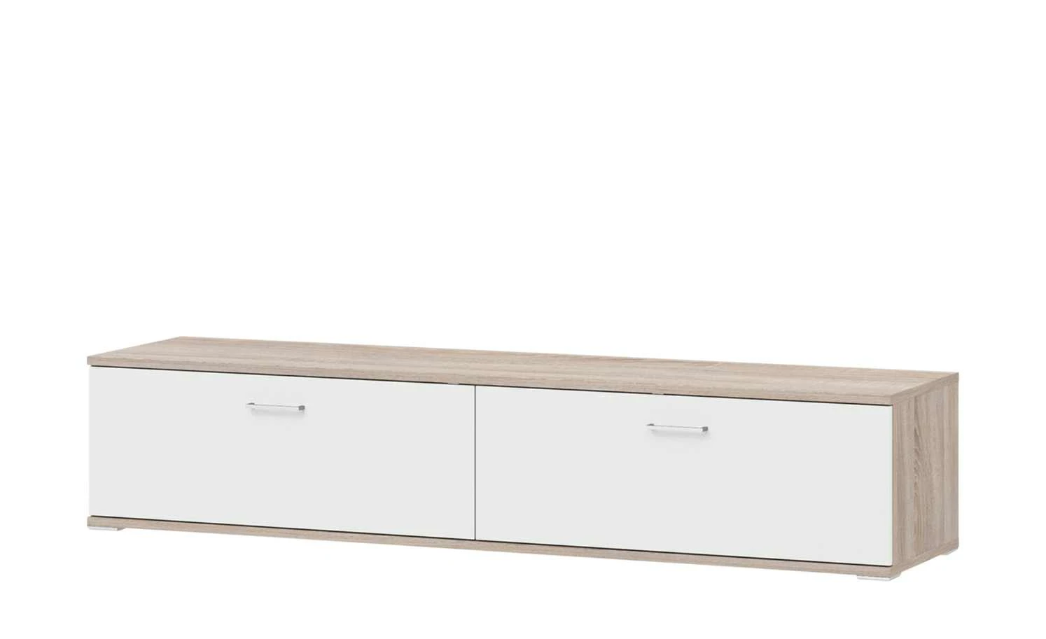 Modern designt und praktisch zugleich – das ist das Lowboard Onyx von uno. Der Korpus verfügt über eine robuste Melaminbeschichtung in dekorativer Holzoptik. Sie wird von der Hochglanzfront abgesetzt, die ein stylisches Weiß hat. Das Besondere an der Front: Sie unterteilt sich optisch in zwei Schubladen. Doch dahinter verbergen sich in Wirklichkeit vier geräumige Schubladen. Sie sind mit einem Selbsteinzug und einem Soft Close ausgestattet. Deshalb schließen sie langsam und geräuscharm.