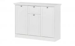 Stylisches Design und Funktionalität vereinen sich in der Kommode Bent von uno. Der Korpus ist in rustikaler Navarra Eiche (Nachbildung) gehalten. Die weiße Front setzt sich davon dekorativ ab. Sie ist aus Glas und hat einen leichten Glanz. Er hebt das Weiß hervor. Das Sicherheitsglas ist robust und kratzerunempfindlich – so wie auch der Korpus. Er ist mit strapazierfähigem Melamin beschichtet. Bent verfügt über eine Schublade und vier Türen. Dahinter befinden sich acht Fächer mit jeder Menge Stauraum.