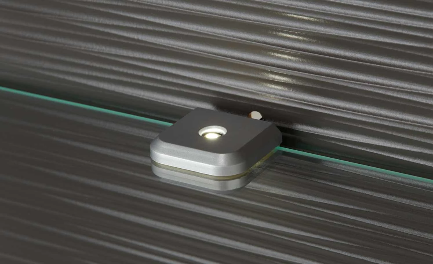- Mehr zum Material: Korpus mit edelstahlfarbigem Metallrahmen, Rückwand hinter dem Glaseinsatz: Grau in 3D Design