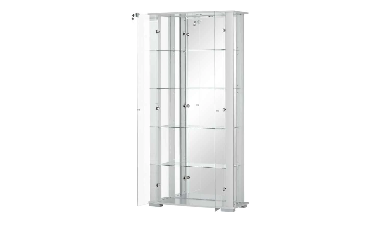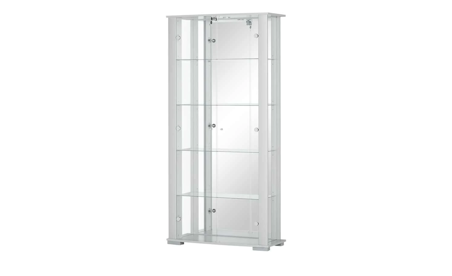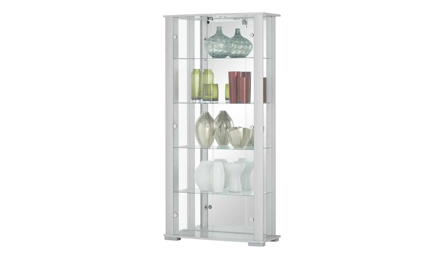 - Mehr zur Ausführung: Belastbar je Einlegeboden: 5kg, inklusive Vitrinenschloss