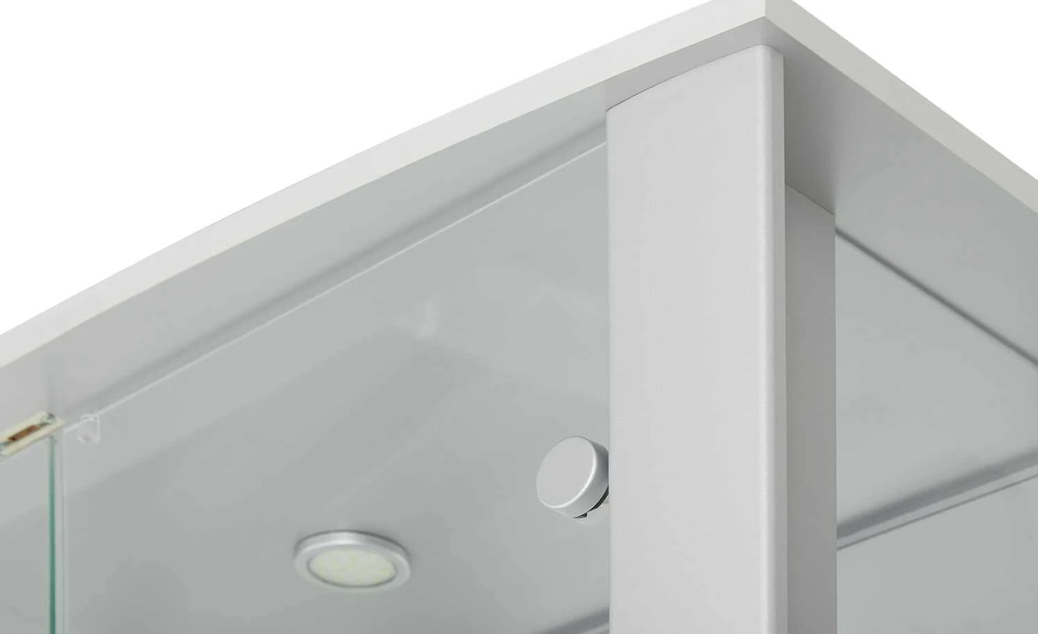 - Mehr zu Ausstattung / Funktion: alle Türen, Seiten und Böden aus Sicherheitsglas, Bodenträger aus Stahl mit transparenter Hülse
