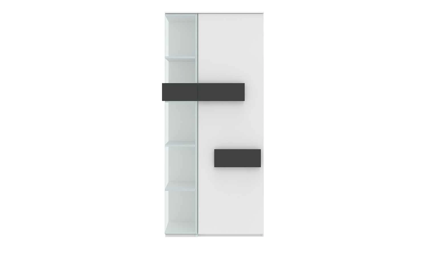 - Mehr zu Ausstattung / Funktion: Drehtür mit Metall-Topfbandscharnieren mit 110 Grad Öffnungswinkel, 3 Böden hinter der Glasfront, Regal mit Geheimfach, Front: 19 mm stark mit ABS-Kante, Korpus: 16 mm stark mit Dekorkante, 4 Böden hinter der Tür