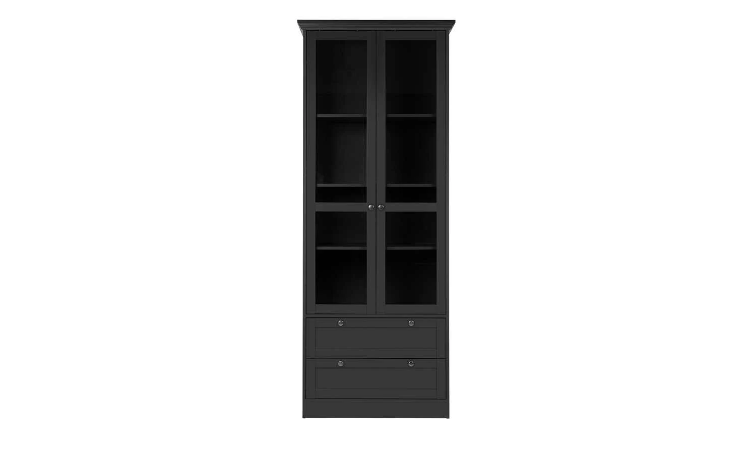 Mit ihrem schlichten Landhauscharme ist die Vitrine Laurito ein Highlight für das Esszimmer. Aber selbstverständlich macht sie auch im Wohnraum eine gute Figur. Die beiden Türen sind mit Klarglas abgesetzt. Sie bieten einen freien Blick in die vier Vitrinenfächer. Die drei Einlegeböden können Sie nach Belieben in der Höhe variieren. Unter den Vitrinentüren stehen Ihnen zwei Schubladen zur Verfügung. Dank der Melaminbeschichtung sind die Oberflächen kratzerunempfindlich.