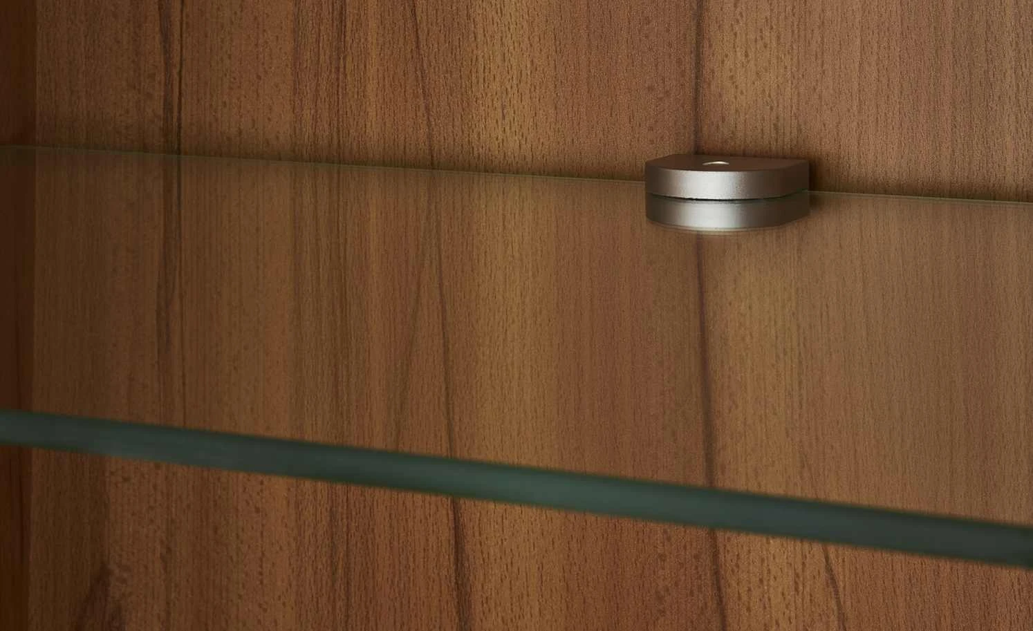 Kernbuche ist ein schön gemasertes Holz und macht sich wunderbar für Möbel. Das beweist die Vitrine Toscolano, für deren Front massive Kernbuche verwendet worden ist. Um es zu schützen, ist die Oberfläche mit einem Lack versiegelt worden. Der beschichtete Korpus der Vitrine ist passend zur Front in einem Kernbuchendekor (Nachbildung) designt. Die Beschichtung selbst ist besonders widerstandsfähig. Hinter der Drehtür verfügt Toscolano über vier Fächer. Die beiden oberen sind durch das Glas in der Tür einsehbar. Eine LED-Beleuchtung bringt die Fächer und deren Inhalt wunderbar zur Geltung.