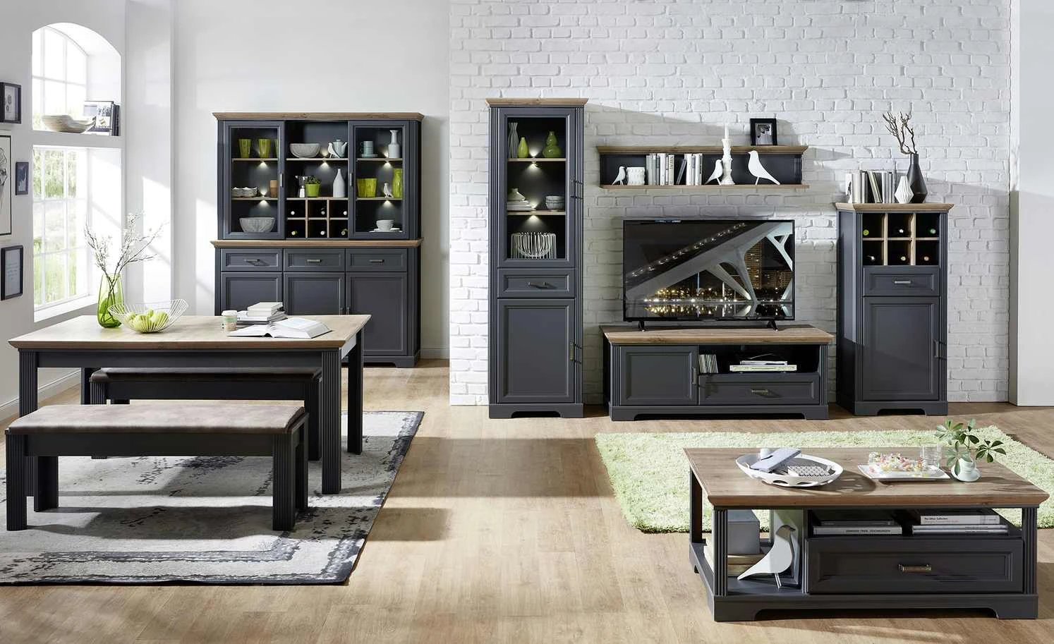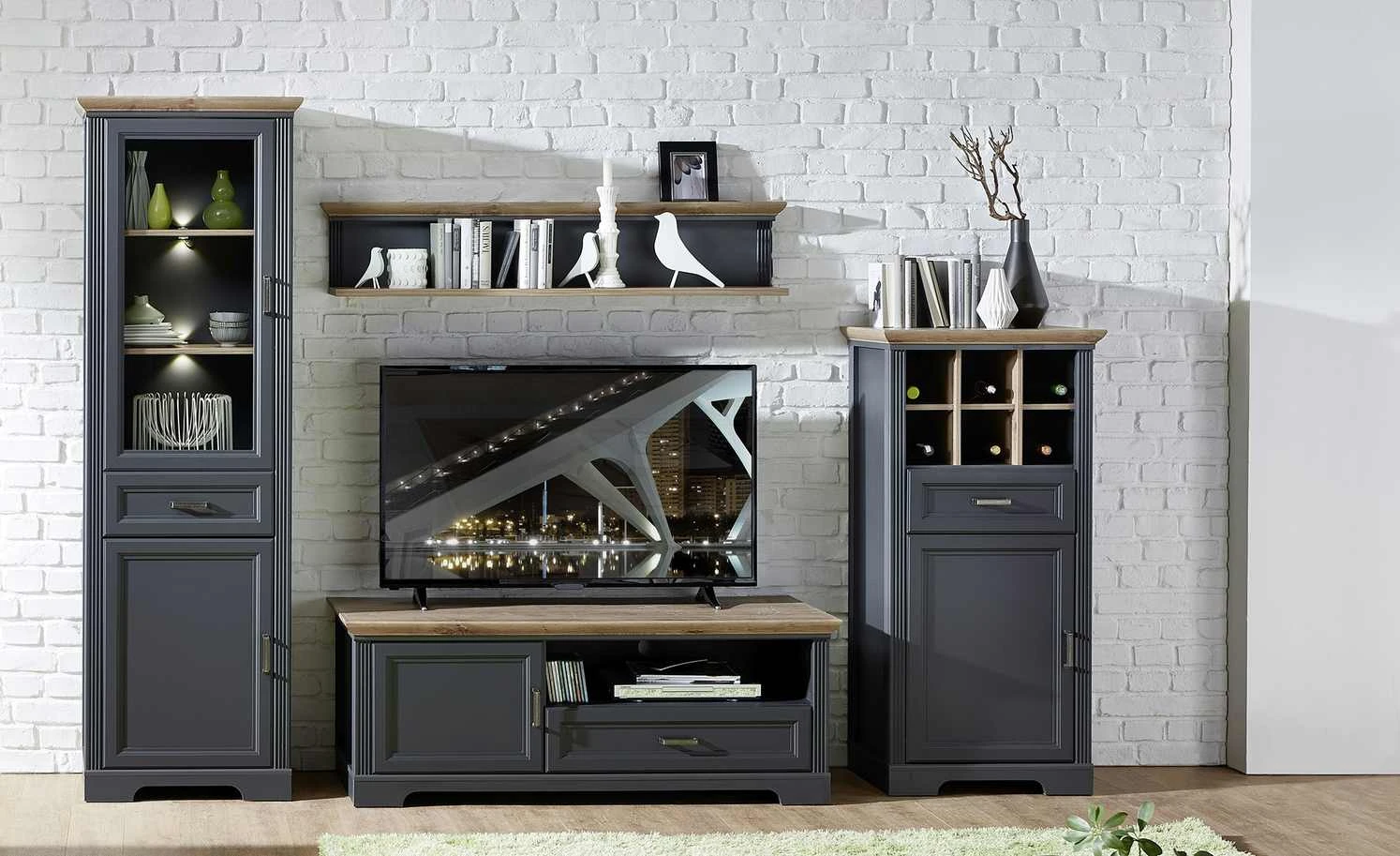 Vitrine Varese | Graphitgrau / Asteiche (Nachbildung)