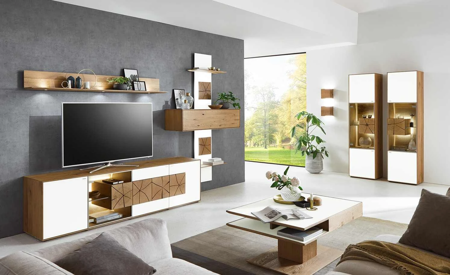 - Mehr zum Material: Korpus aus Kerneiche Umato massiv, gebürstet, Front aus Mattglas