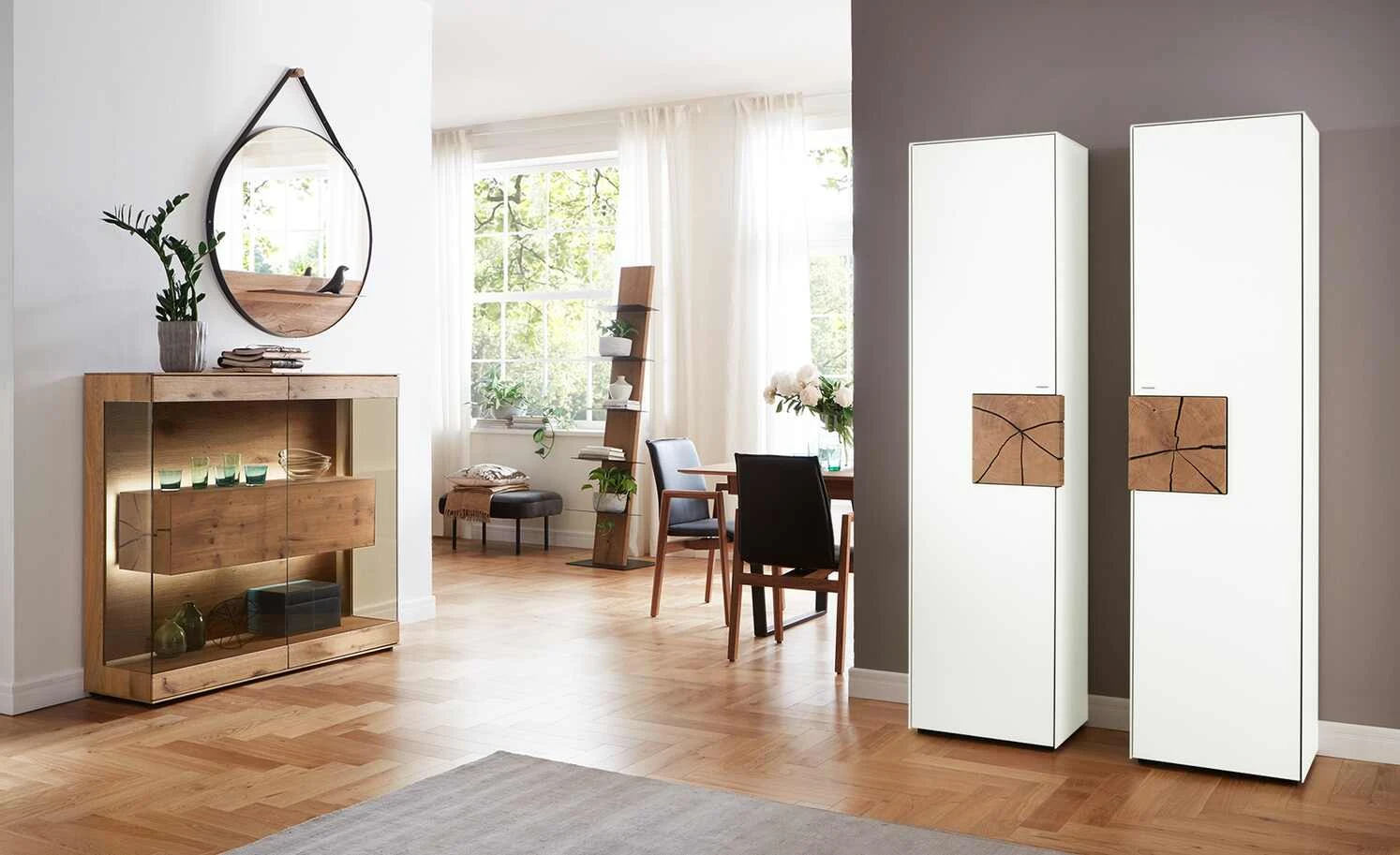 - Mehr zum Material: Hirnholz-Applikation aus Kerneiche Umato, gebürstet, Korpus und Front aus Glas matt