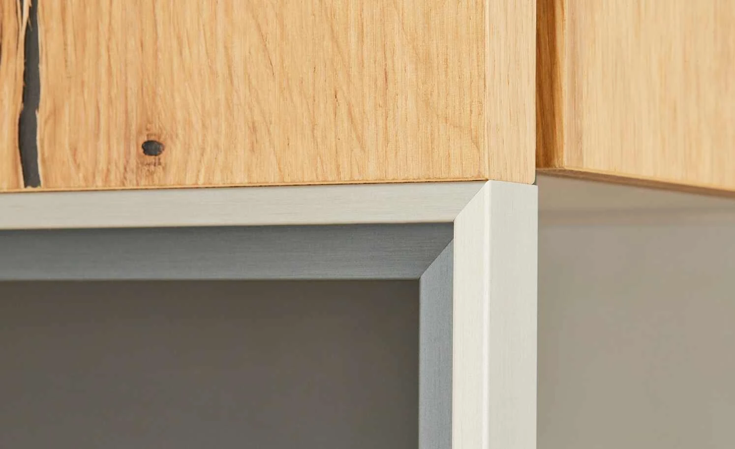 - Mehr zum Material: Griffe aus Aluminium haptisch gebürstet, Front und Korpus aus Holzwerkstoff furniert in Salzkammergut Alteiche natur