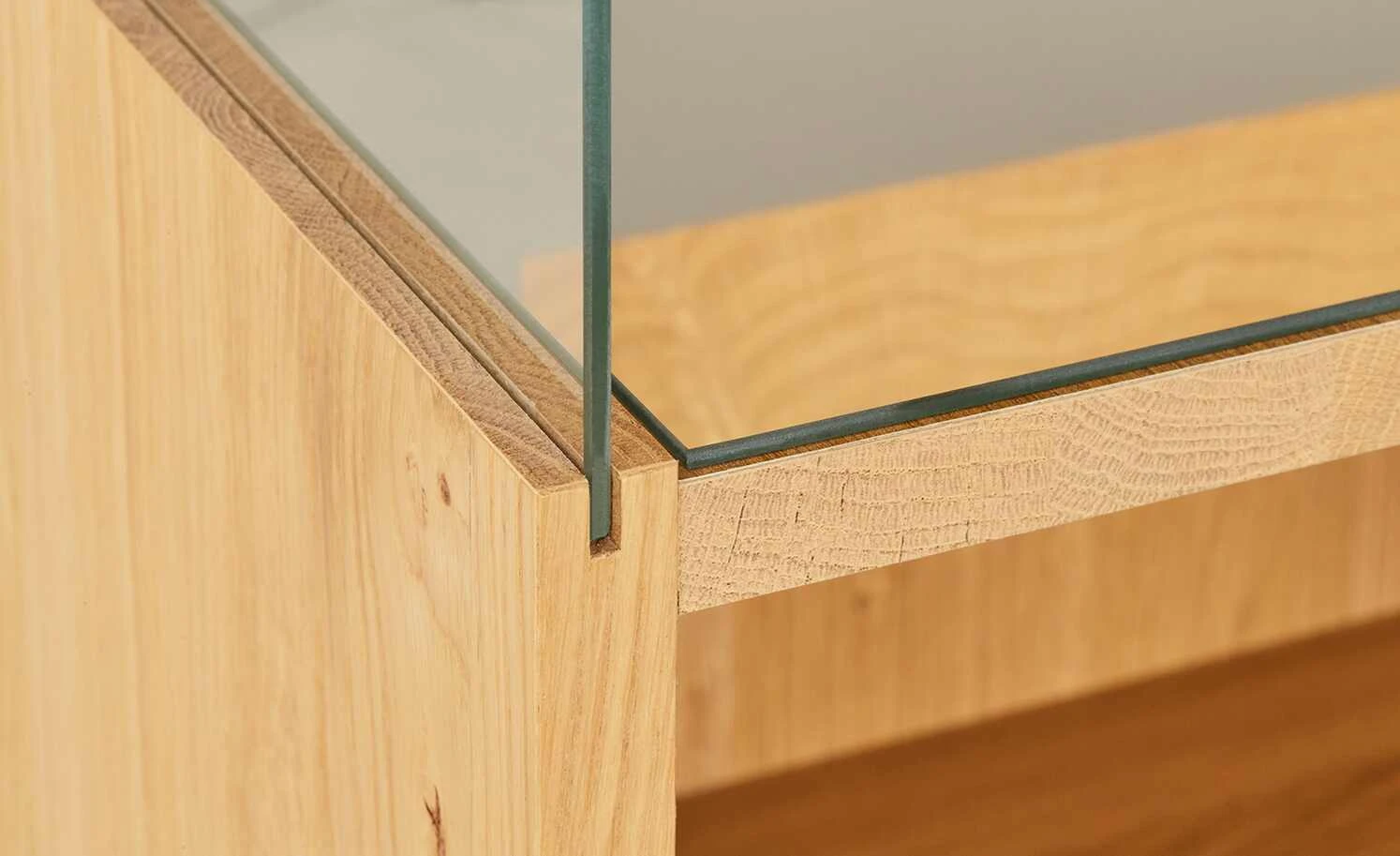 - Mehr zum Material: Griffe aus Aluminium haptisch gebürstet, Front und Korpus aus Holzwerkstoff furniert in Salzkammergut Alteiche natur
